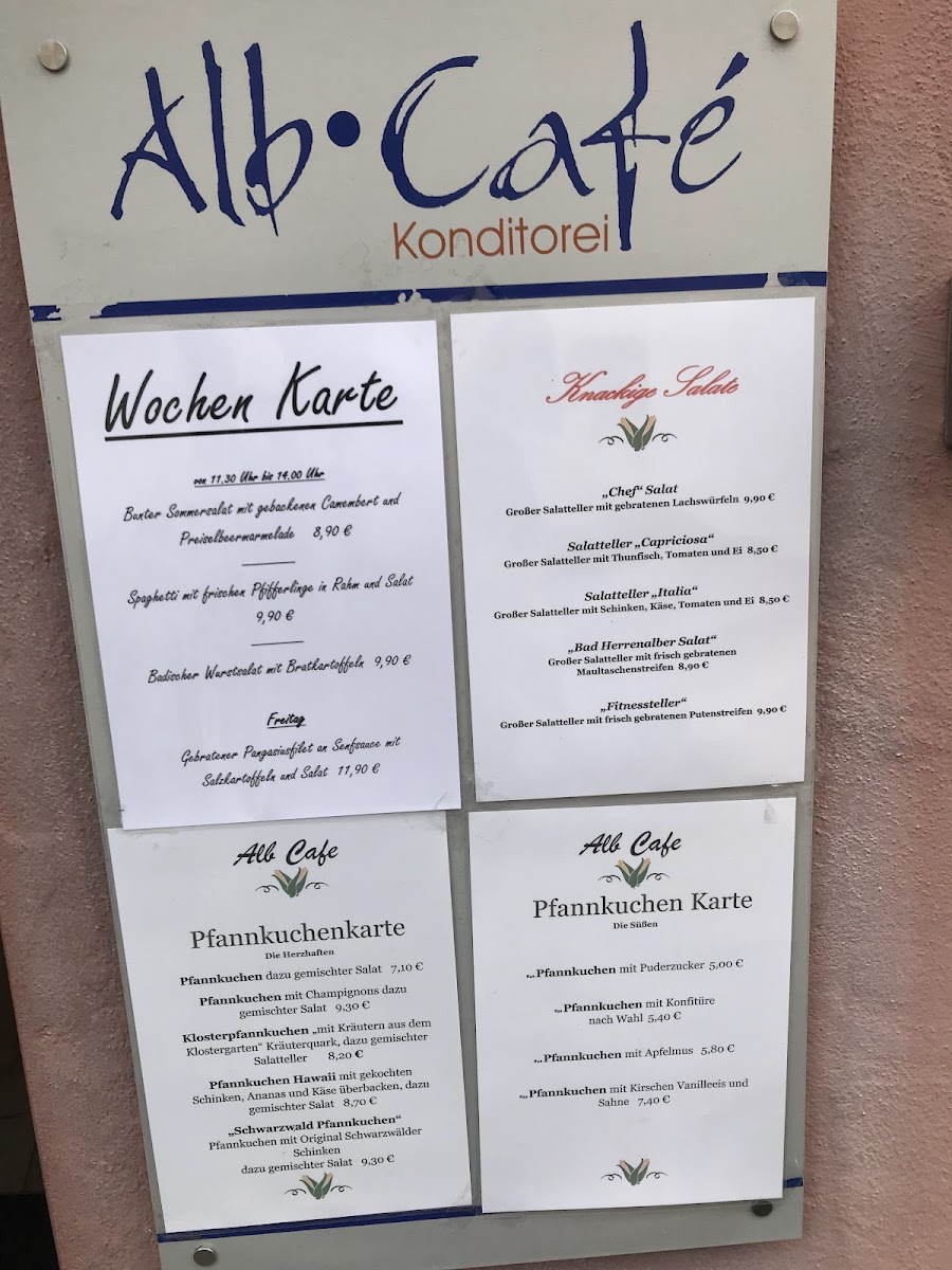 Welcome to Albcafe, a delightful gem located in the heart of Ettlingen at Kirchenpl. 12. This charming cafe is celebrated for its exquisite selection of cakes and rich coffee offerings. Customers rave about the delicious cakes, making it a must-visit spot for dessert enthusiasts. The menu features a large variety of cakes, though prices start around €4 per piece, reflecting the quality and craftsmanship behind each creation.